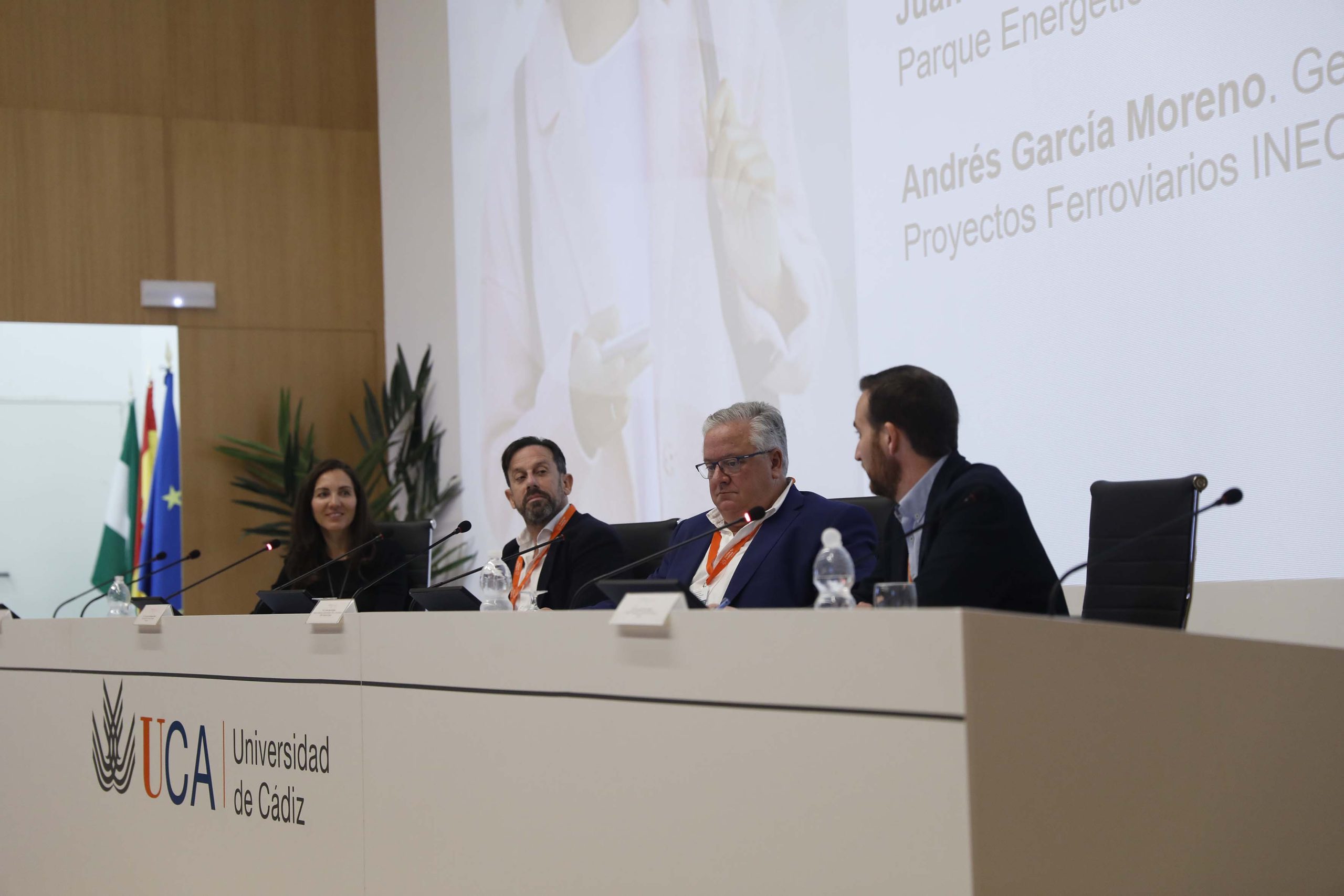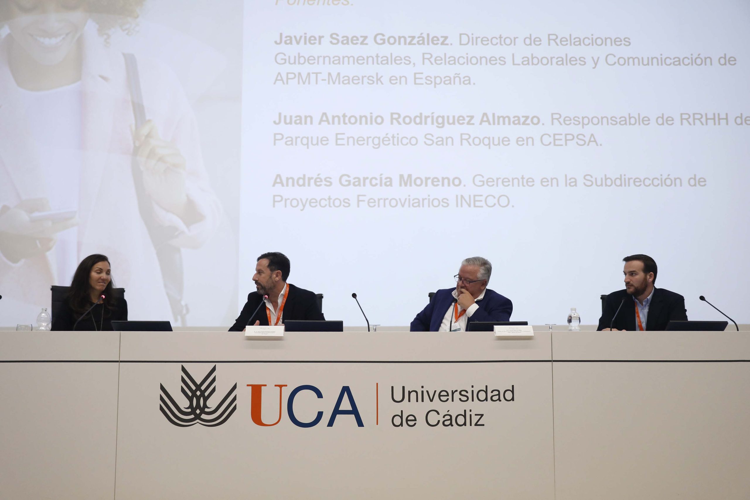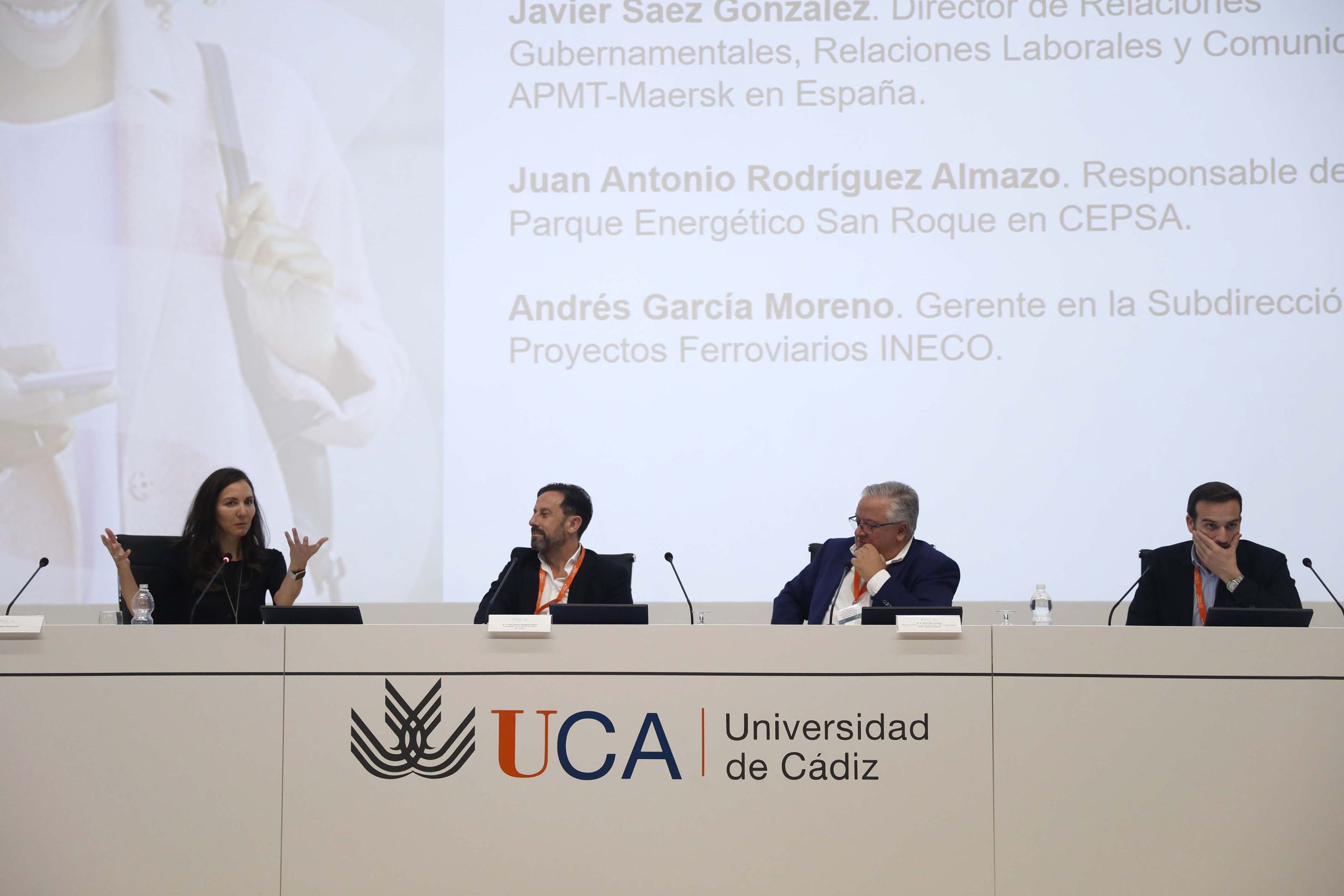Luego tuvo lugar la mesa redonda en la que intervinieron Javier Sáez, director de Relaciones Institucionales y Laborales de APM Terminals en España; Juan Antonio Rodríguez, responsable de RRHH del Parque Energético San Roque en Cepsa; y Andrés García Moreno, gerente en la subdirección de Proyectos Ferroviarios INECO.