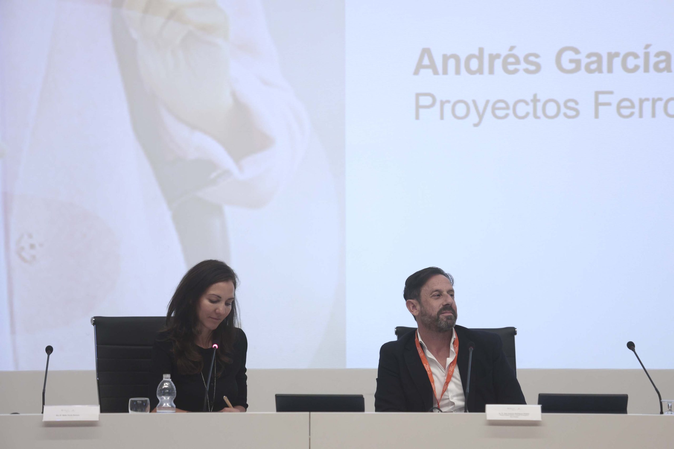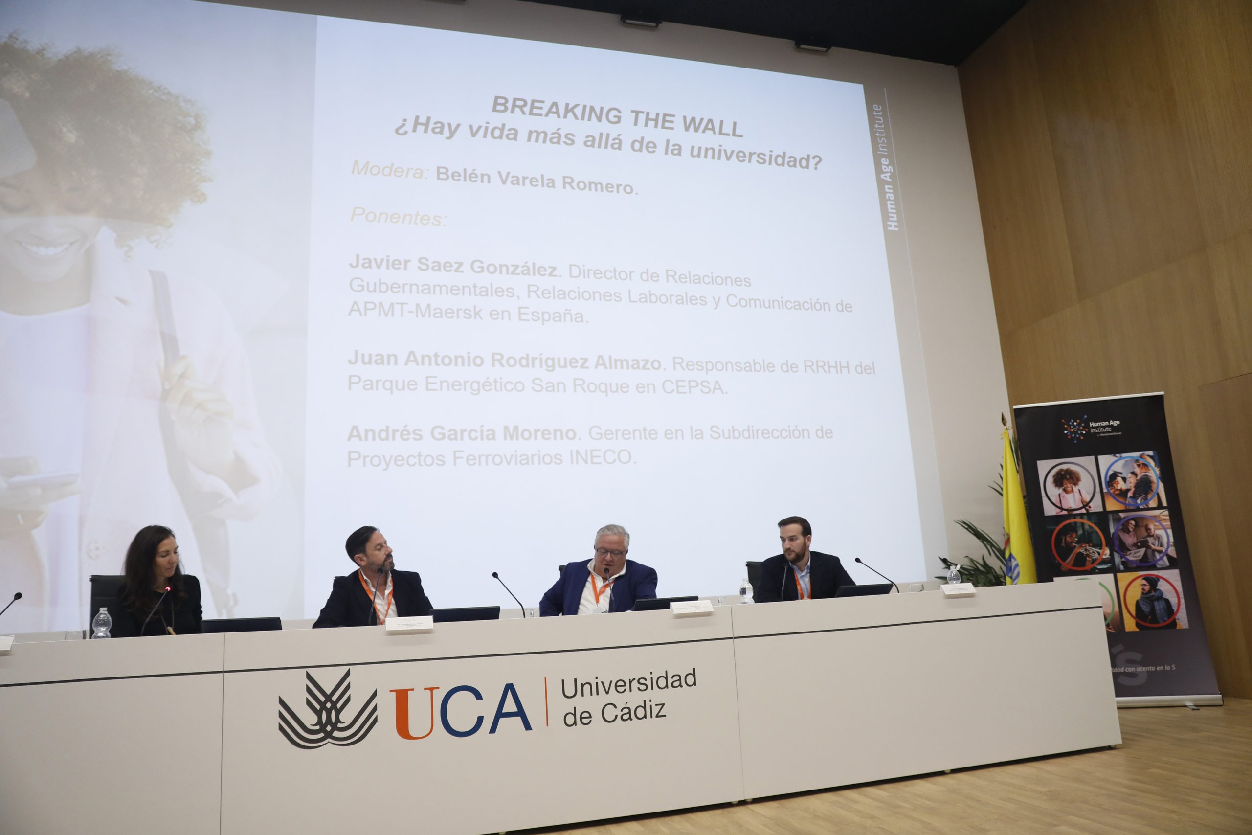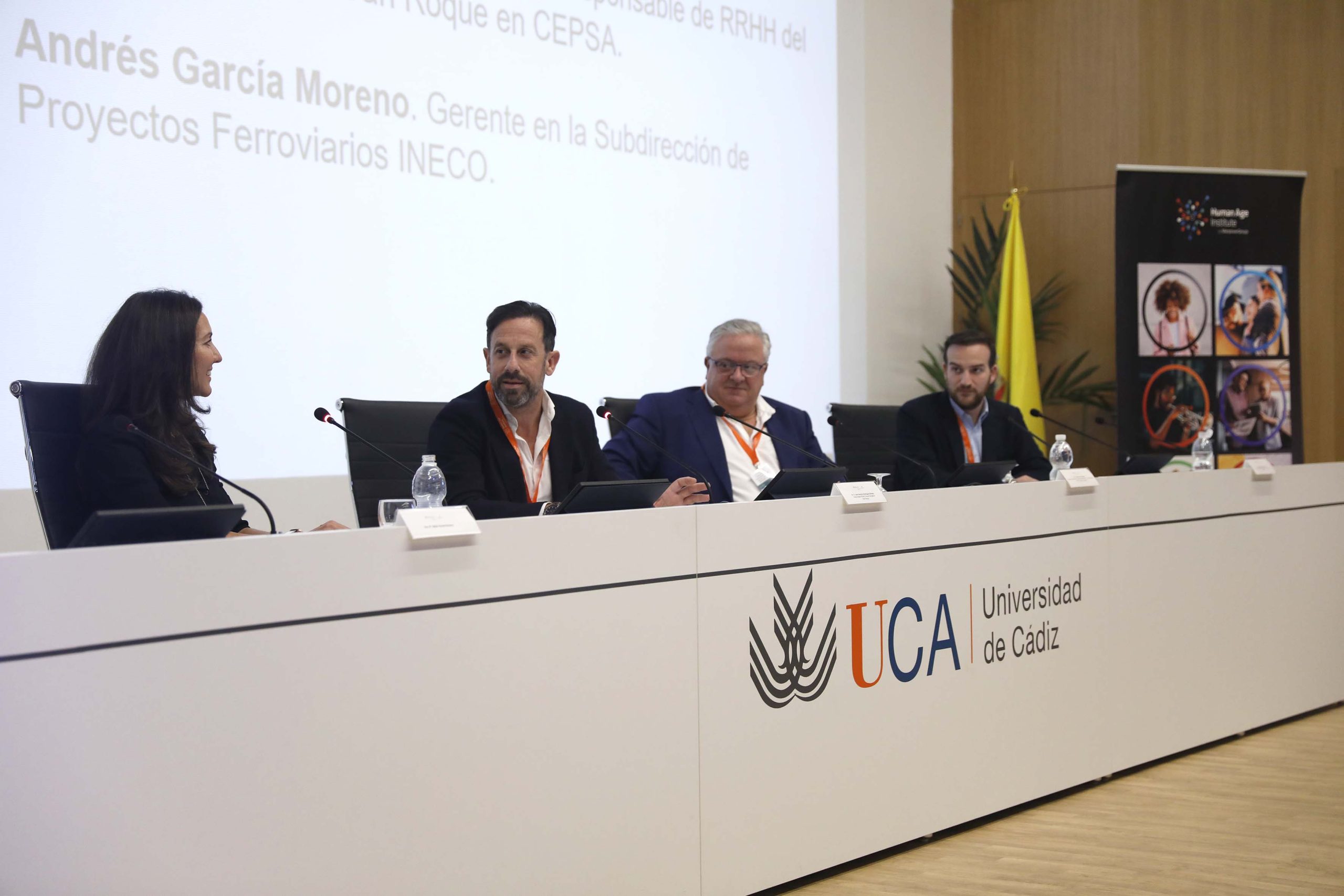 Luego tuvo lugar la mesa redonda en la que intervinieron Javier Sáez, director de Relaciones Institucionales y Laborales de APM Terminals en España; Juan Antonio Rodríguez, responsable de RRHH del Parque Energético San Roque en Cepsa; y Andrés García Moreno, gerente en la subdirección de Proyectos Ferroviarios INECO.