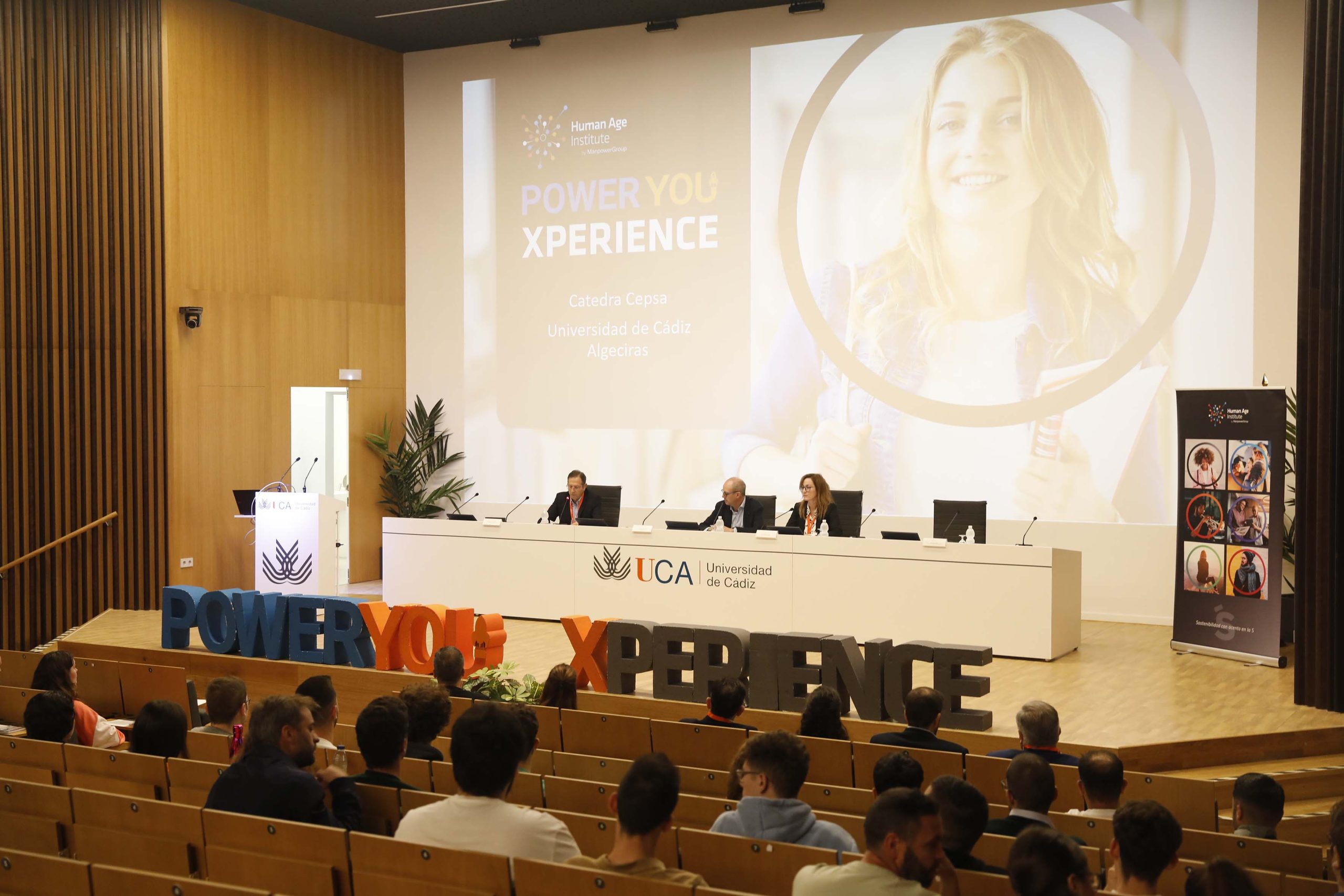 El salón de actos de la Escuela Técnica Superior de Ingeniería de Algeciras (ETSIA) acogió este jueves la jornada PowerYou Xperience, organizada por Fundación Human Age Institute y la colaboración de la Fundación Cátedra Cepsa.