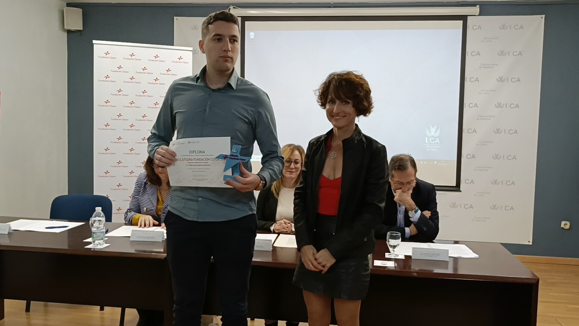 El acto ha contado además de con los ganadores, con la presencia de María Luz Martín, vicerrectora del Campus Bahía de Algeciras de la UCA; Francisco Trujillo, director de la Cátedra Fundación Cepsa; y Estrella Blanco, responsable de Fundación Cepsa.